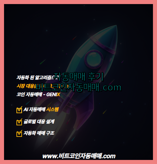 코인 코인자동거래봇와 AI 코인자동거래봇를 고민하고 있다면 GENIX 트레이딩 봇 GENIX를 통해 직접 경험해보시기 바랍니다. 텔레그램 1:1 문의 : genix_trading